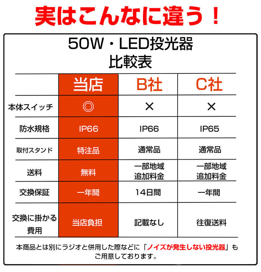 50WLED投光器 屋外倉庫 ガレージ カーポートライト 夜間作業 現場 ワークライト
