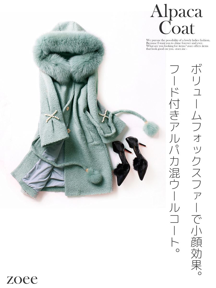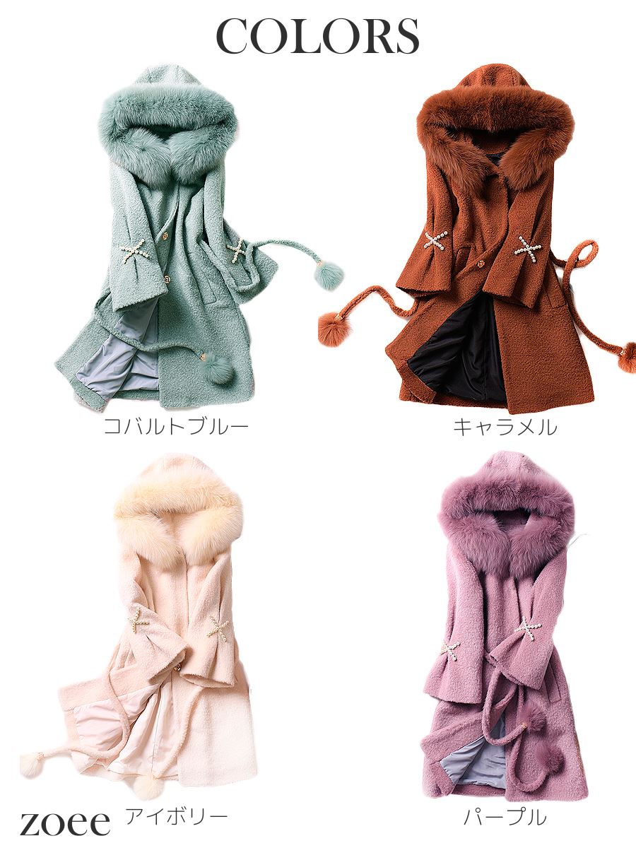 【商品番号】d616 商品番号 d616 商品説明 アルパカを混合した8分袖のフォックスファー付きアルパカウールコートがデビュー! フード周りのふわっふわでやわらかいフォックスファーが可愛さを引き立てます。